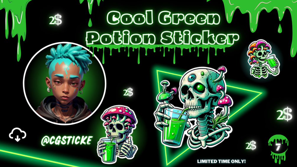 Unleash your magical side with our 7 Cool Green Potion' digital sticker bundle! 🍀✨